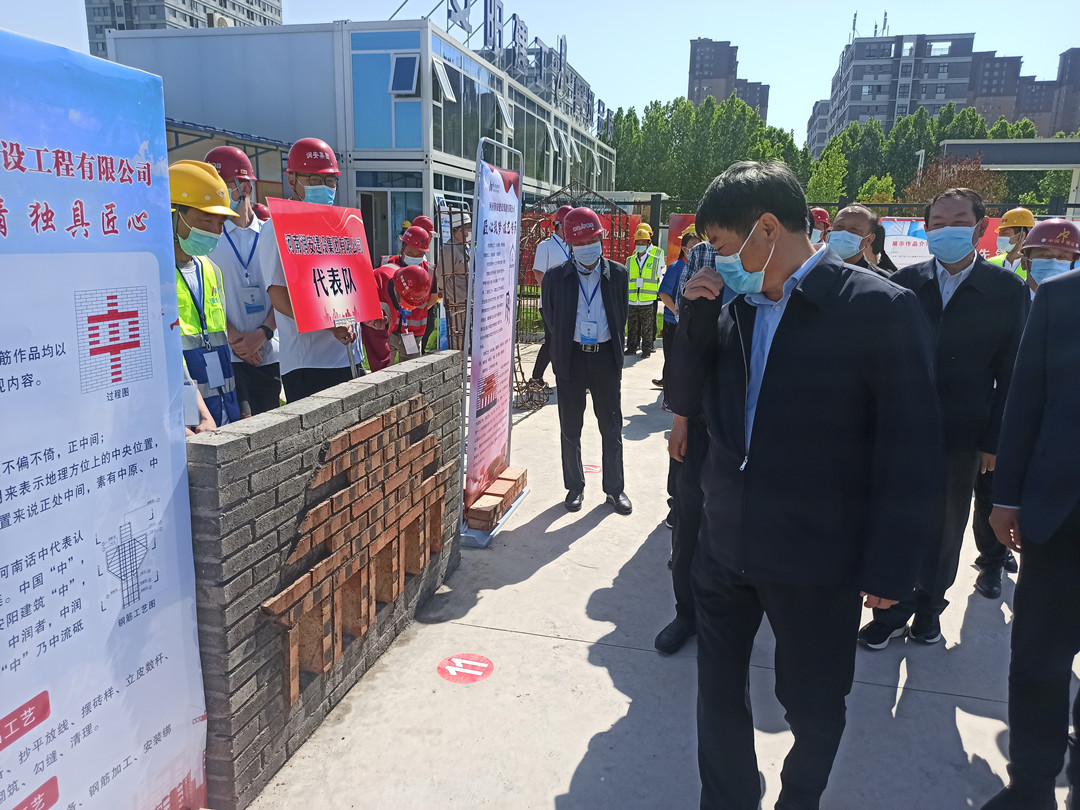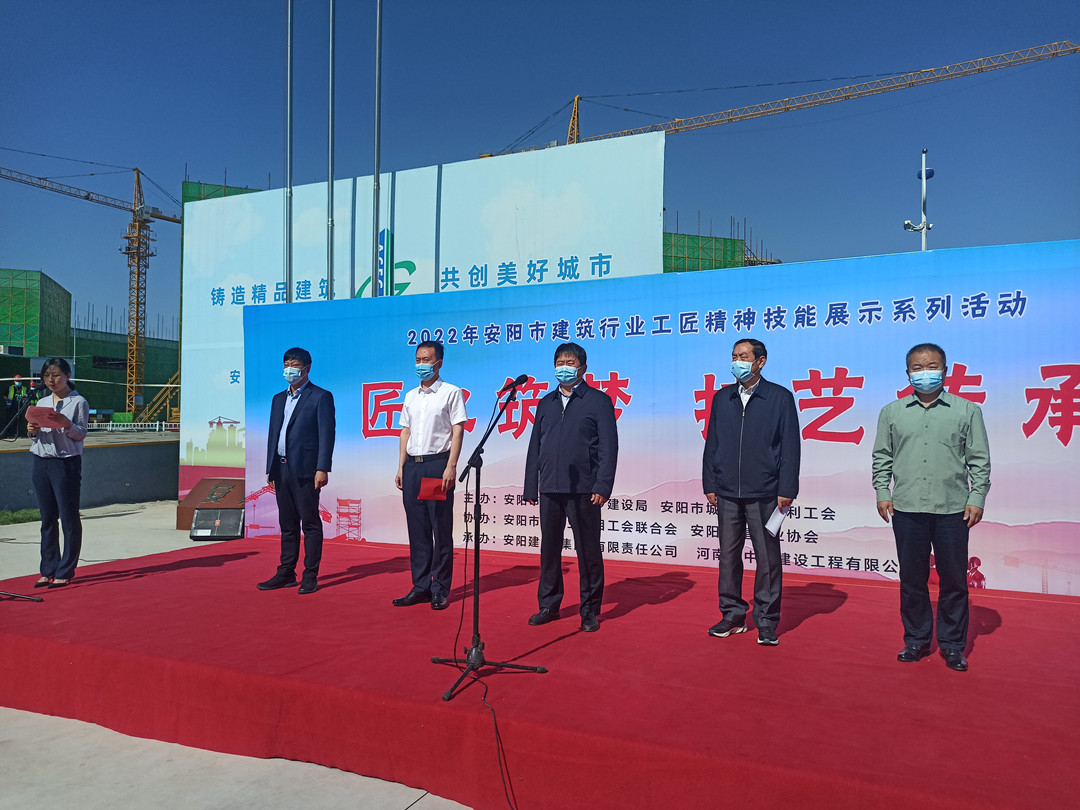 5月16日,由安陽市住建局、安陽市城建交通水利工會共同舉辦的“匠心筑夢 技藝傳承”2022年度安陽市建筑行業(yè)工匠技能展示活動在安陽師范學院教學實驗綜合樓項目工地舉行。集團公司常務(wù)副總楊金貴、副總經(jīng)理王福民、王超帶隊參加了活動。